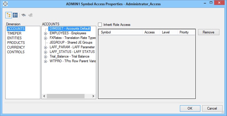- If you want the group to inherit symbol access from the selected role for the dimension, select Inherit Role Access.
