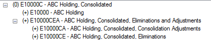 - An elimination and adjustment hierarchy will be created under the consolidation entity (i.e.: E10000CEA).