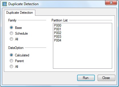 - Select Tools > Duplicate Detection. The Duplicate Detection dialog displays, as shown below: