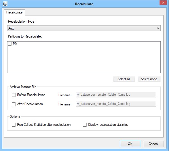 - Select the partitions you want to include in the recalculation. If you want all partitions included, click Select all.
