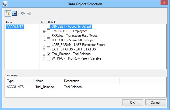 - Click OK once you have selected the account from the selection dialog.