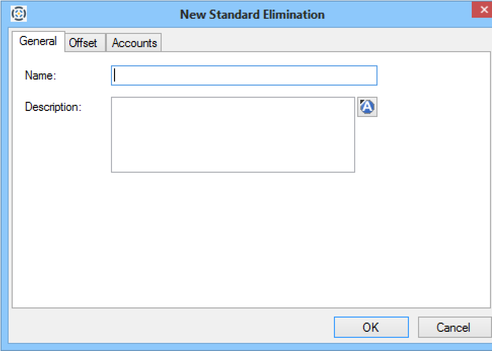 - Enter a name and description for the new elimination, and select the Offset tab.