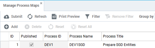 - The Manage Process Maps table appears.