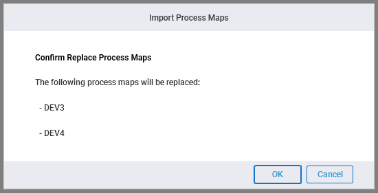 - If any process maps in the selected file will replace process maps already in the system a confirmation dialog will appear.