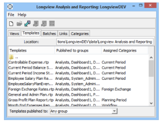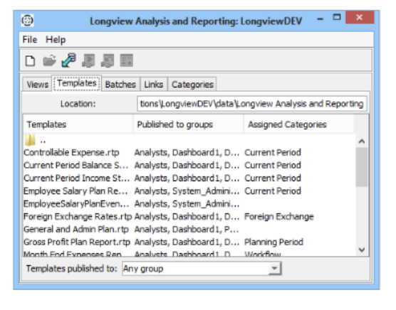 - In the Longview Analysis and Reporting dialog, click the Templates tab.