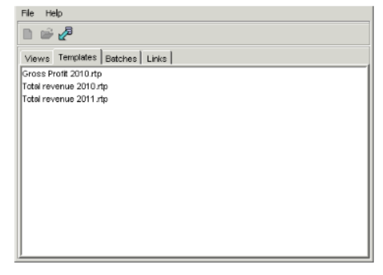 When published to the database, Report Users can access the template to run their reports either individually or in batches. However, they see the template in report view format only.