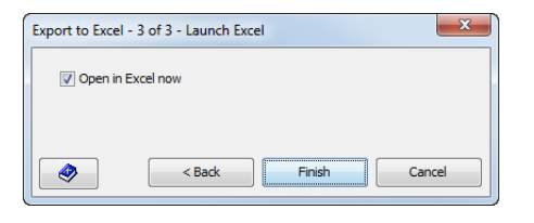 - Click Next. The Export to Excel - 3 of 3 - Launch Excel dialog appears.