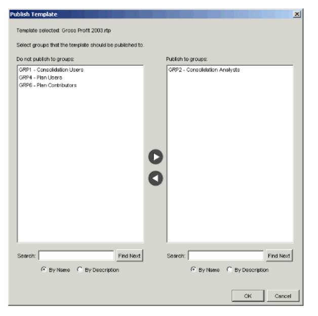 - In the Do not publish to groups field, select the groups to which you want to publish the template, and move them to the Publish to groups field using the right arrow button. You can select more than one group at a time by holding down the Ctrl key while making your selections.