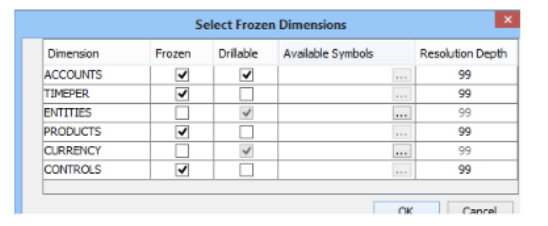 - A frozen dimension is one in which the Report Publisher selects the symbols that can be used by the Report User.