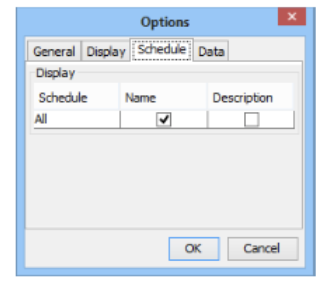 - Select whether you want the name or description of the schedule, or both, displayed when viewing schedule information in your views. For more information, see Including schedule data.