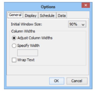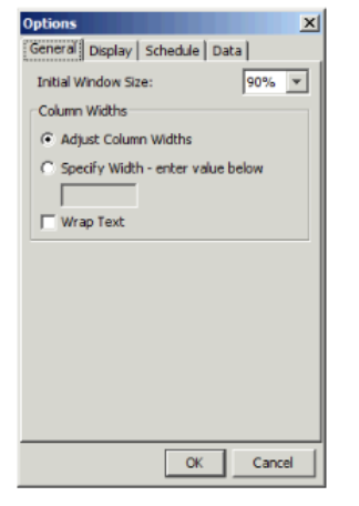 Specify Width - enter value below Enter a percent (whole numbers only) of the window width for the width of columns. Wrap Text If you want text to wrap to the width of columns, select this option. - Click the Display tab.