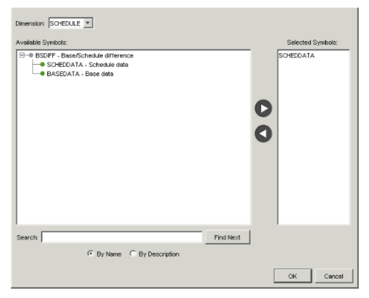 - Move the BASEDATA symbol to the Selected Symbols field. By default, SCHEDDATA data is already selected.