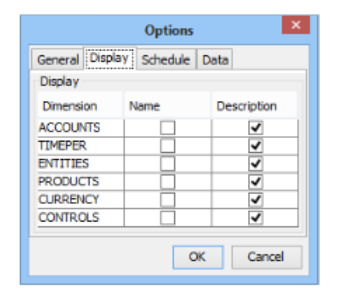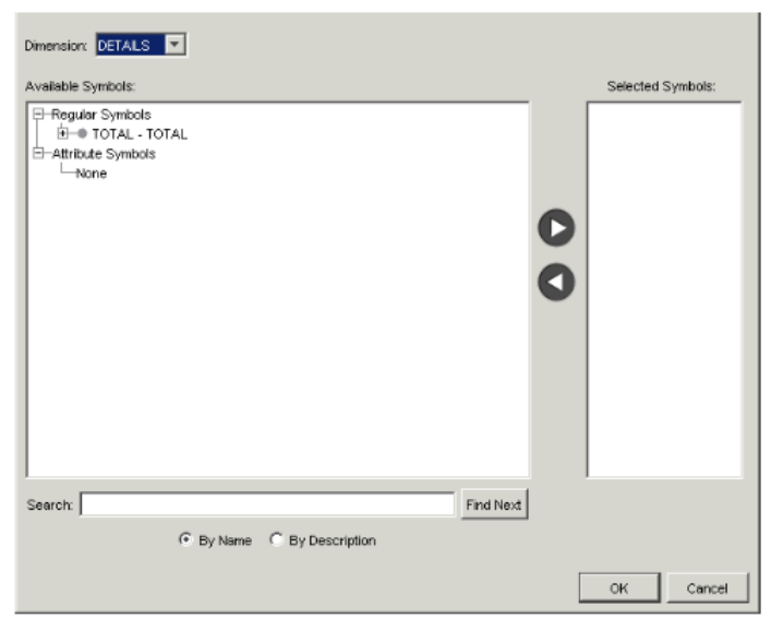 - For each dimension in the Longview database, select the type of symbol information to view. You can choose to see symbol names, symbol descriptions, or both.