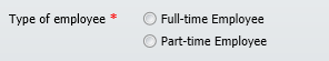 RadioGroup "Type of employee", sEmpType, "$emptype$", "Text:Full-time Employee|Part-time Employee", "OnChange:SetEmpType.lvpro"