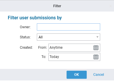 - In the User Submissions list, click Filter. The Filter dialog opens.