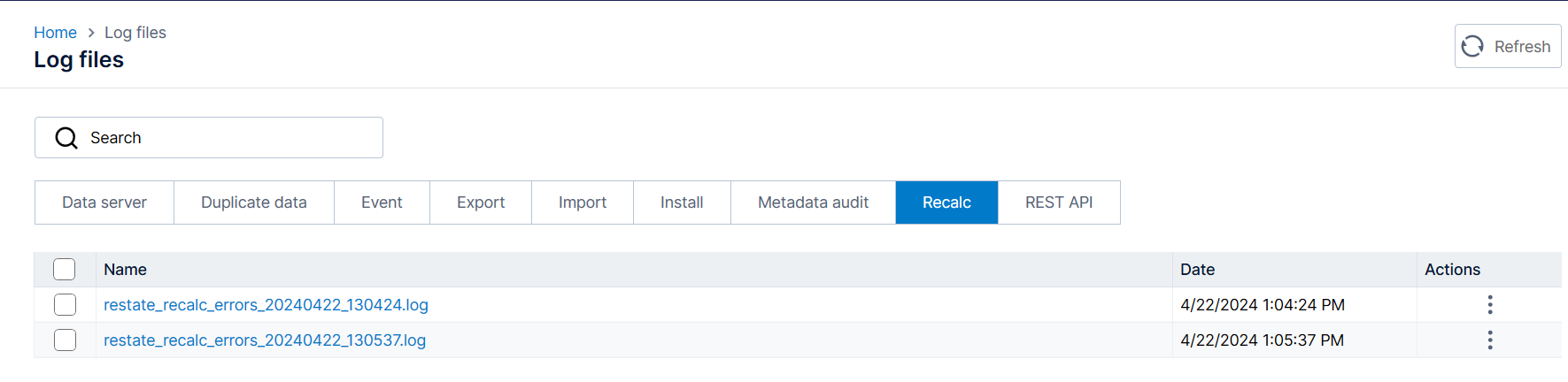 Note: If an error occurs during the restatement, the error is logged in the lv_dataserver.log, and a restatement error log is also created. The restatement error log is named restate_recalc_Errors_<timestamp>.log file. This allows you to more easily identify when a restatement has failed or encountered errors, as such issues could affect your data. Restatement errors can now also be found in the Recalc tab. For more information, please refer to the Recalc tab.