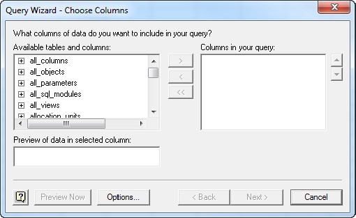 - Click OK. The Query Wizard - Choose Columns dialog displays, as shown below: